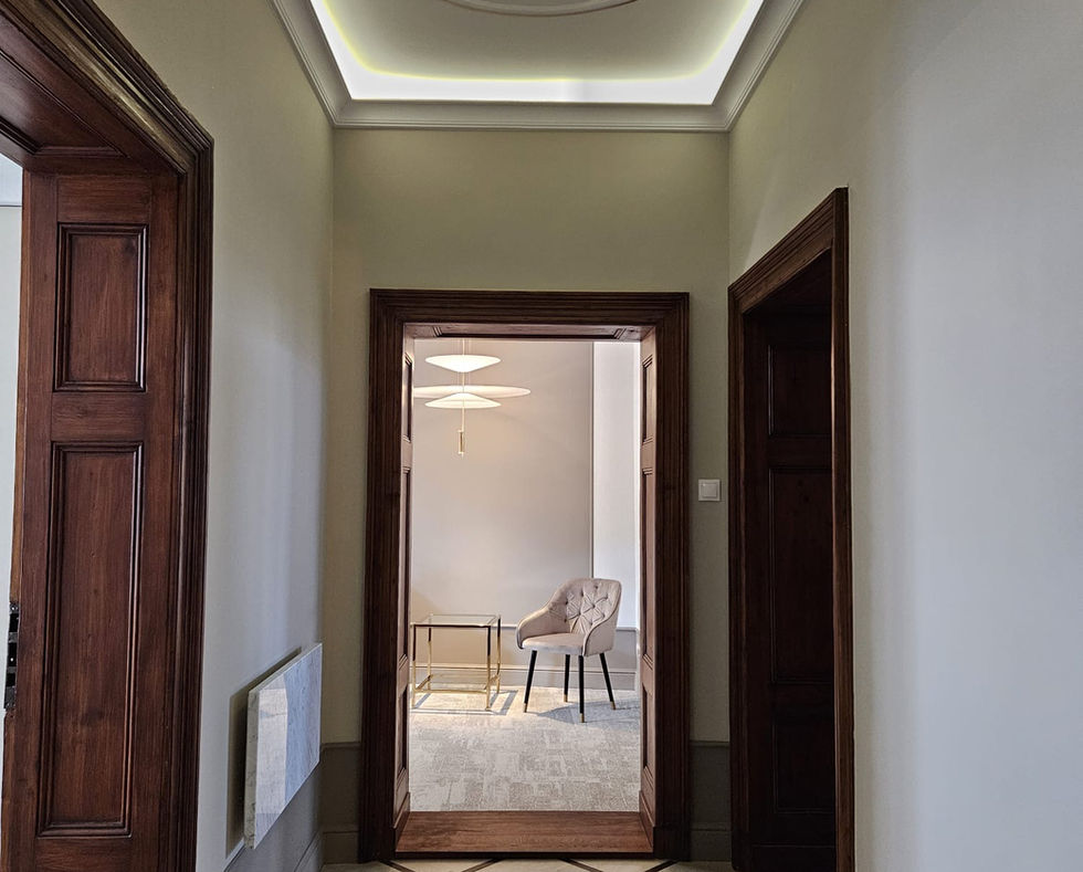 Dla kancelarii prawnej w Świdnicy wykonaliśmy pełny projekt wnętrz obejmujący dobór materiałów, oświetlenia, mebli oraz nadzór nad realizacją. Naszym celem było stworzenie eleganckiej, reprezentacyjnej przestrzeni podkreślającej prestiż miejsca.